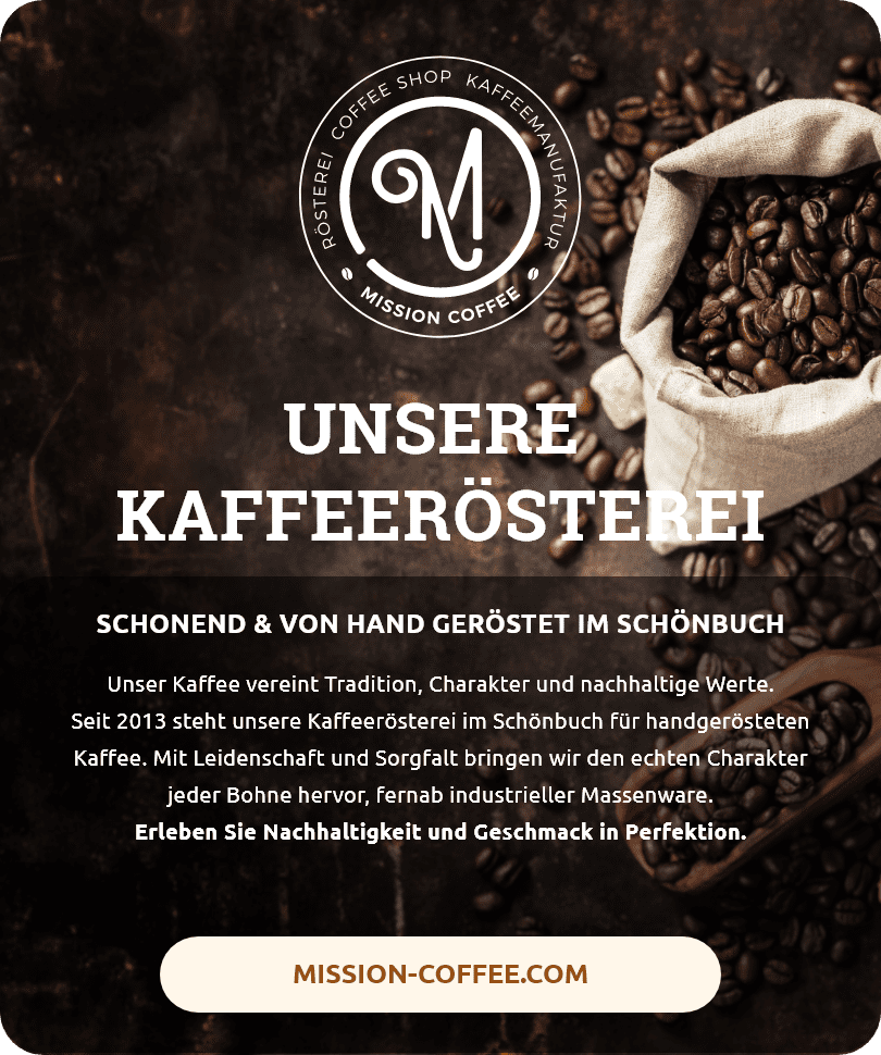 Exzellenz aus lokaler Röstung: Wir servieren Specialty-Bohnen, die direkt hier in Stuttgart von Mission Coffee geröstet werden. Ihre Gäste werden den Unterschied schmecken, den frische, handwerkliche Röstqualität ausmacht.
